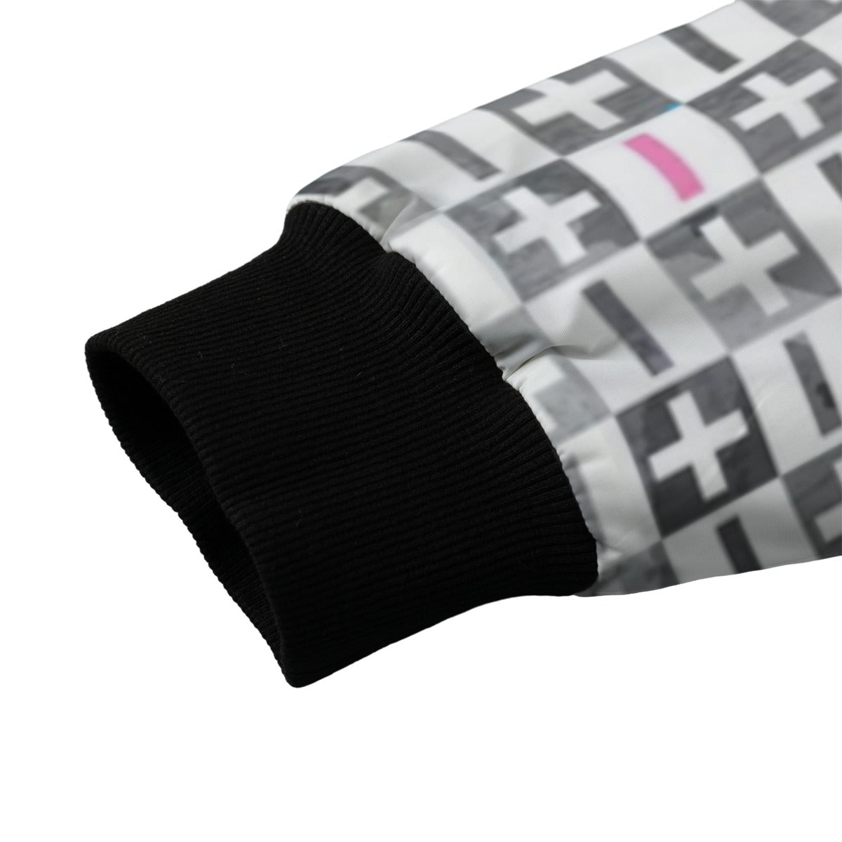 <p>This bomber jacket is more than just outerwear – it’s a <em>visual statement</em>. With its colorful signs and bold abstract design, it embodies individuality and creativity, making it an essential piece for urban explorers.</p>