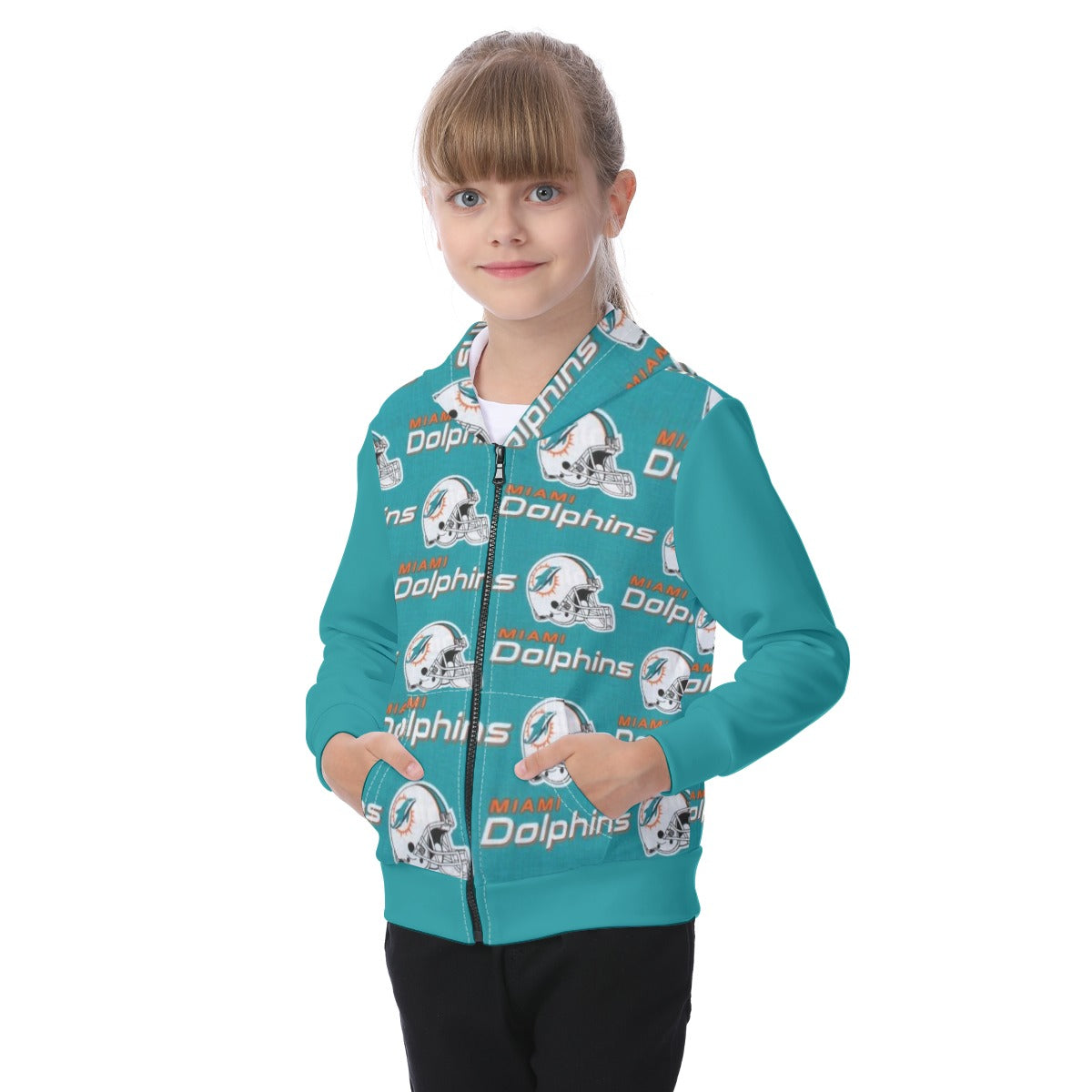 Miami Football Game Day All-Over Print Kid's Zip-up Hoodie With Patch Pocket