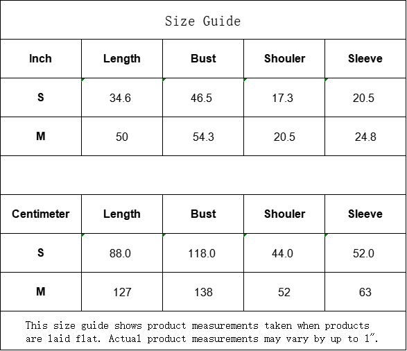 Centimeter | Length | Bust | Shouler | Sleeve |