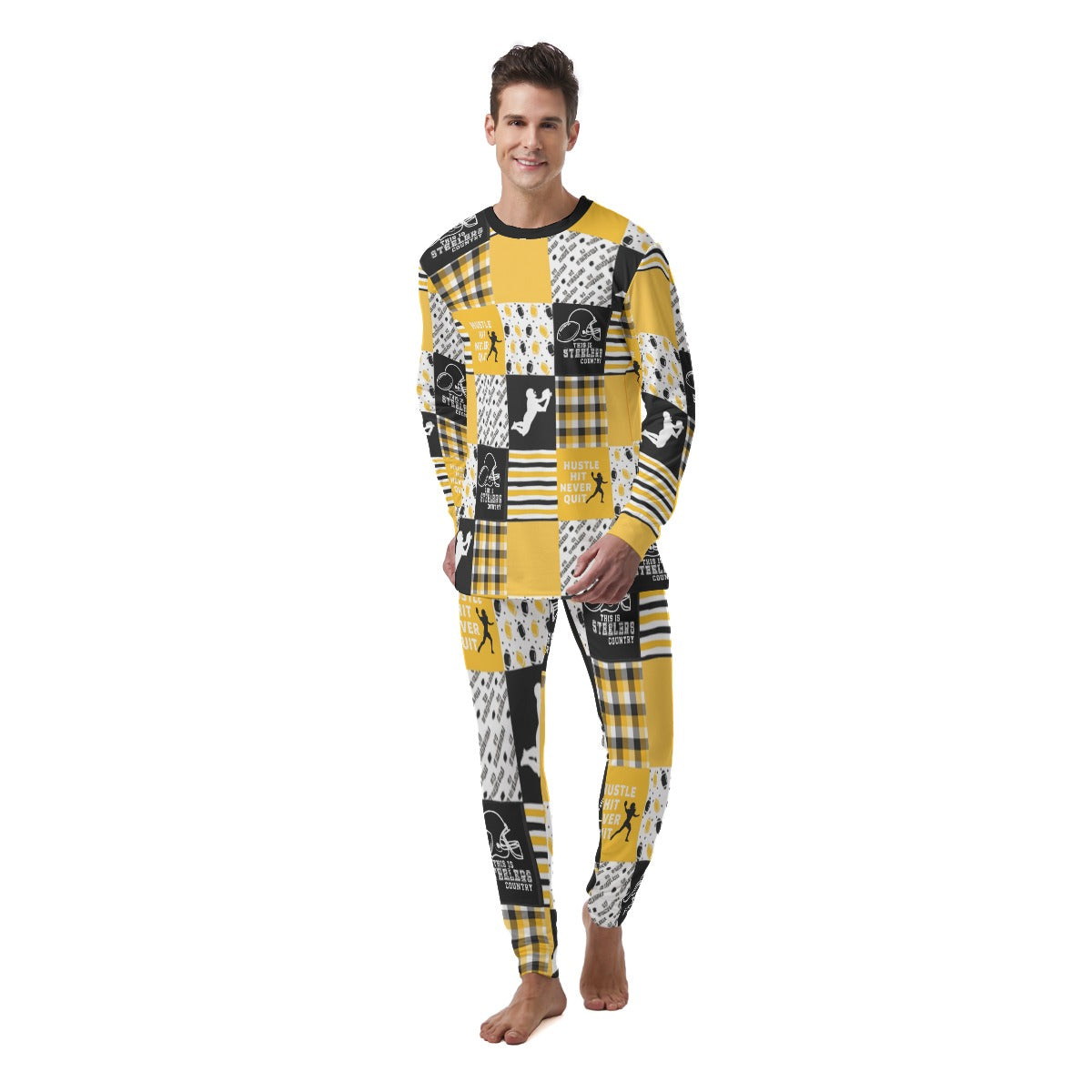 These soft men's pajama sets are stretchy, incredibly soft, and easy to wash, making them ideal for lounging and daily use.Double-layer reinforced crewneck, cuffs, and hem resist deforming to maintain look and shape. Cuffs are snug and help seal in the heat while sealing out the cold.These men's pajama bottoms have a wide elasticated waistband for an adjustable and personal fit. From the bedroom to the living room to the kitchen, these men's pajama sets will keep you comfortable whether you're sleeping, sitting and playing games, hanging out, or doing yoga and meditation.