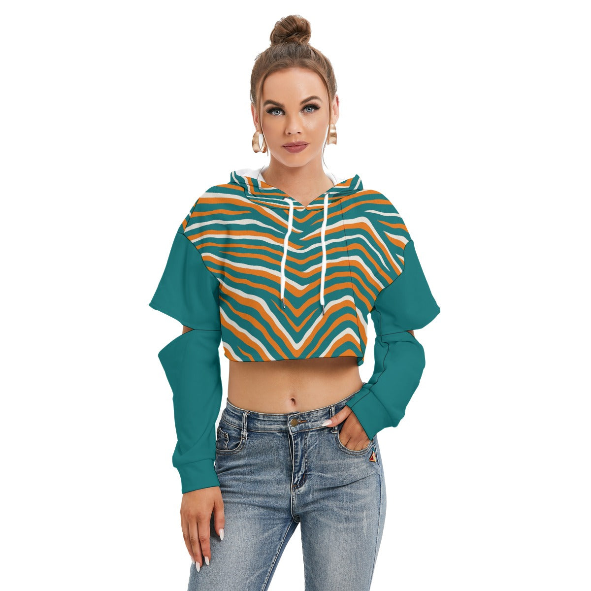 Miami Football Game Day All-Over Print Women's Heavy Fleece Hoodie With Hollow Out Sleeve