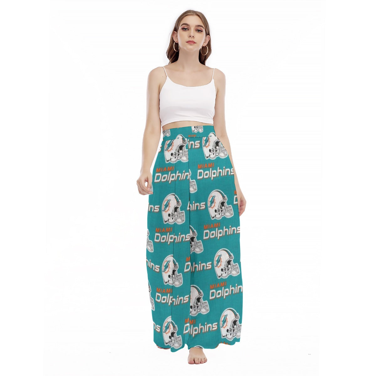 Miami Football Game Day All-Over Print Women's High Waist Wide Leg Trousers
