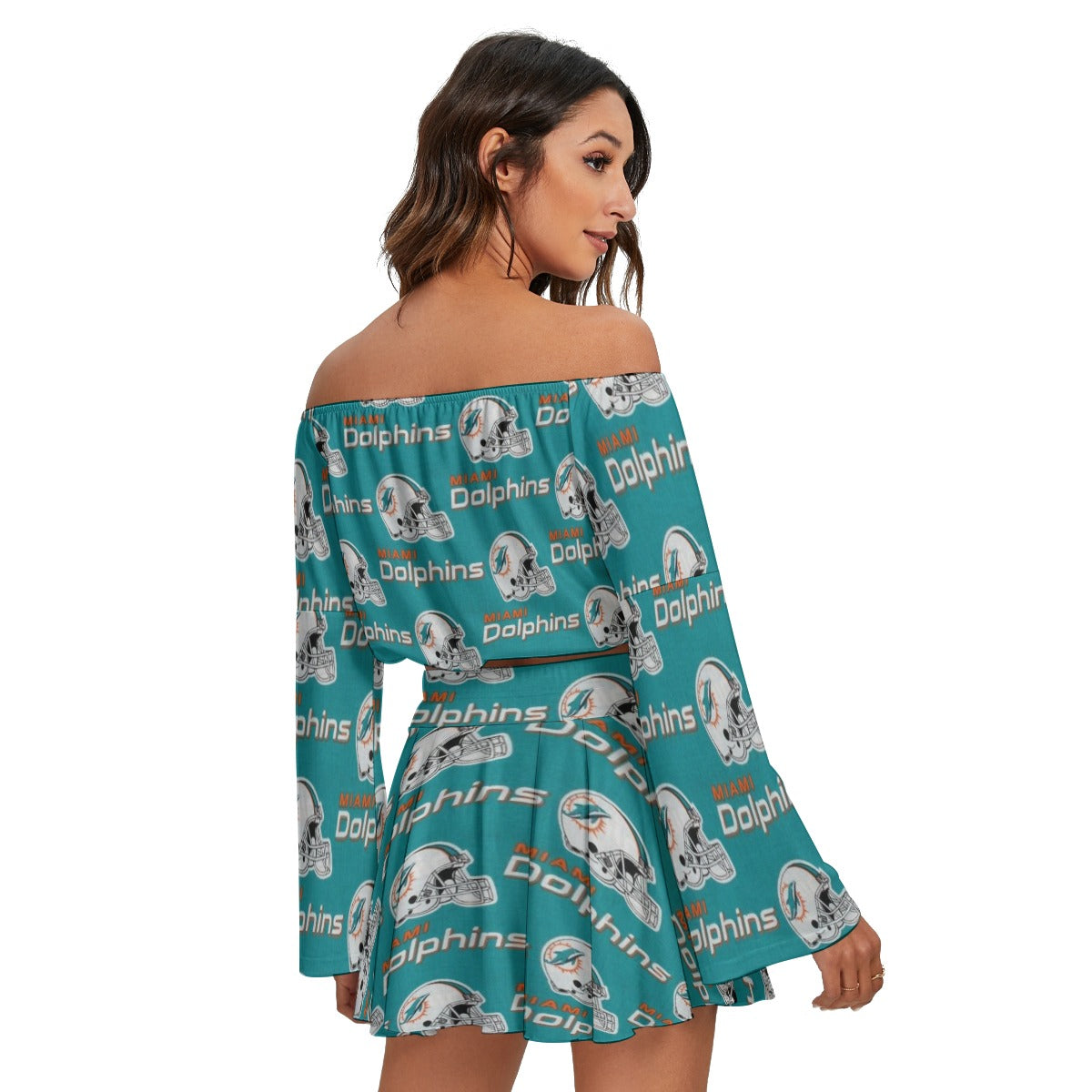 Miami Football Game Day All-Over Print Women's Off-shoulder Top And Skirt Set
