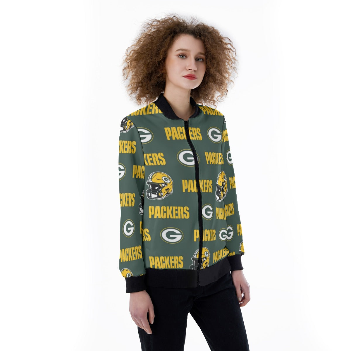 Green Bay Football Game Day All-Over Print Women's Ribbed Stand-up Collar Jacket
