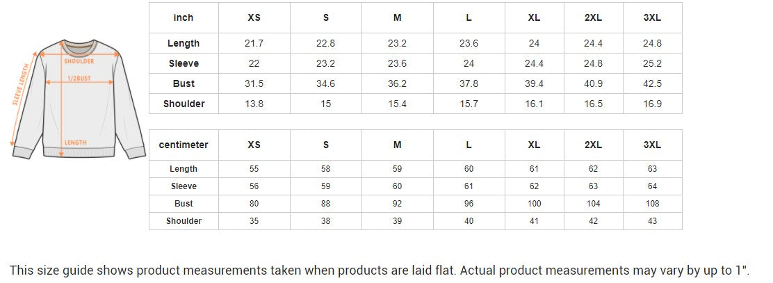This size guide shows product measurements taken when products are laid flat. Actual product measurements may vary by up to 3cm.