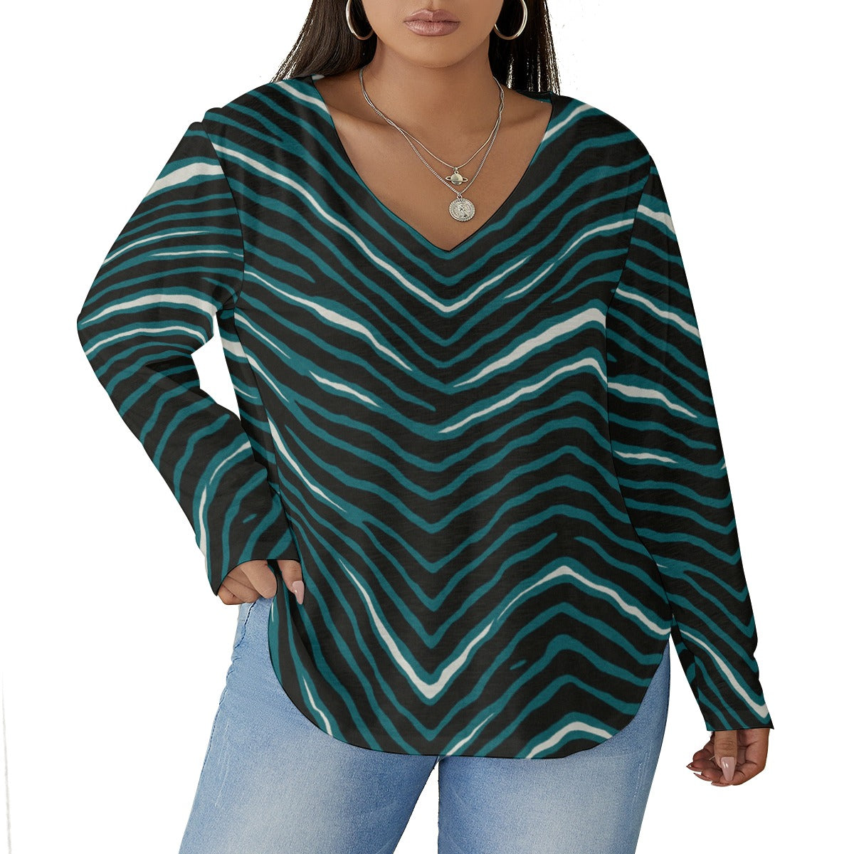 Philadelphia Football Game Day All-Over Print Women's V-neck T-shirt With Curved Hem(Plus Size)