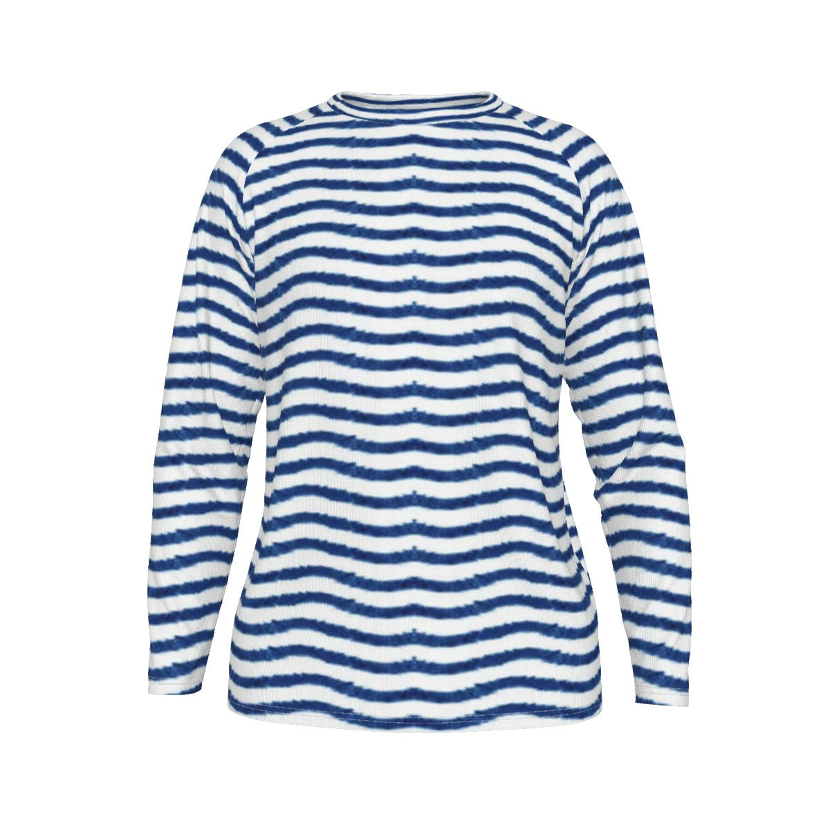 Blue and White Wave Striped Long Sleeve Shirt – Coastal Breeze Collection