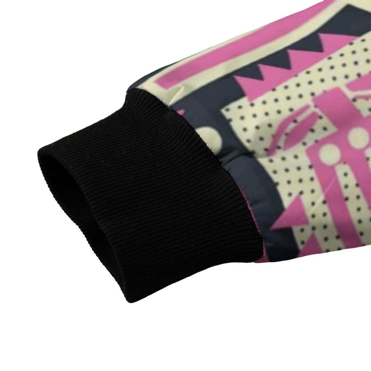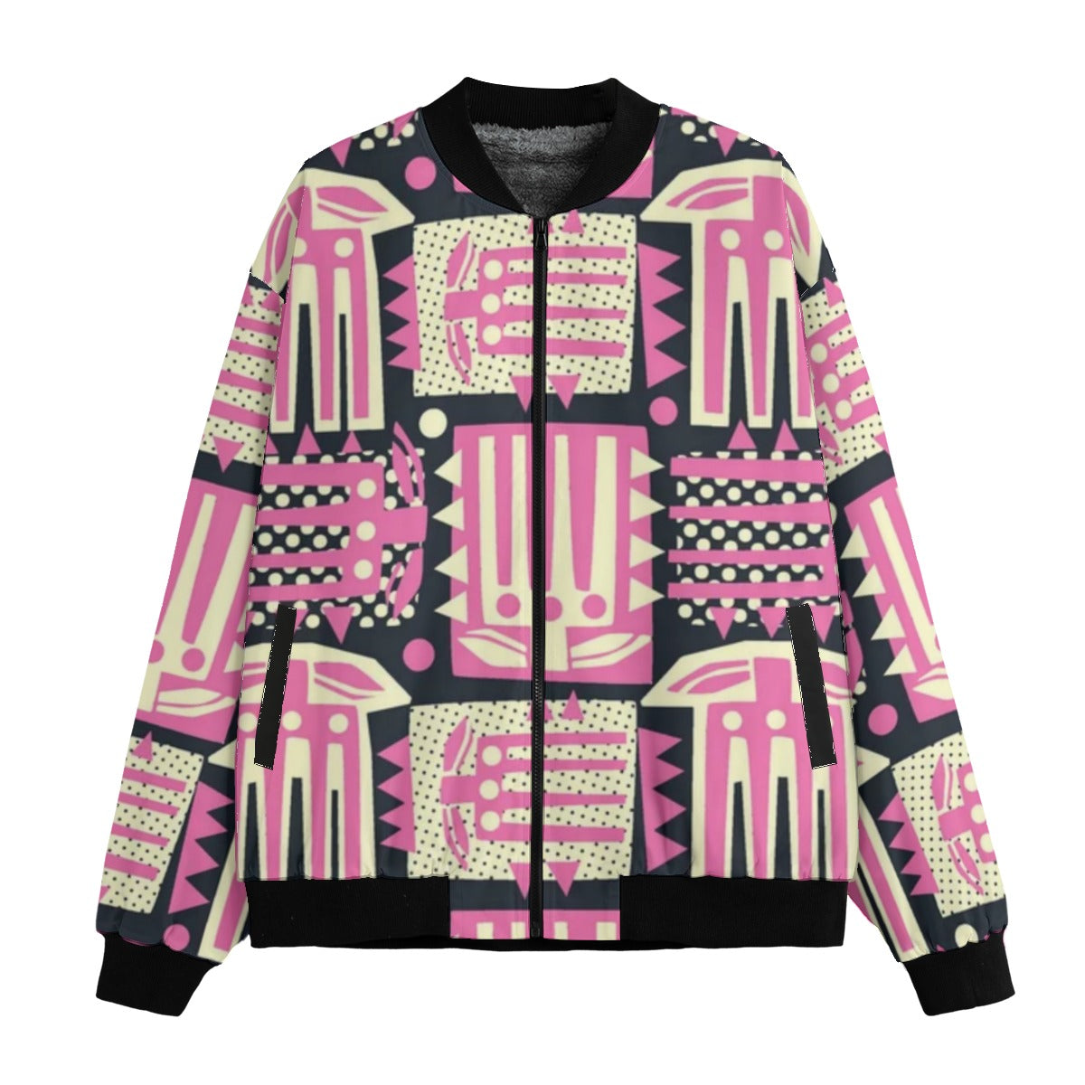 BoomBox Vibes Abstract Pink Flowers Seamless Fleece Bomber Jacket – Artistic Urban Streetwear