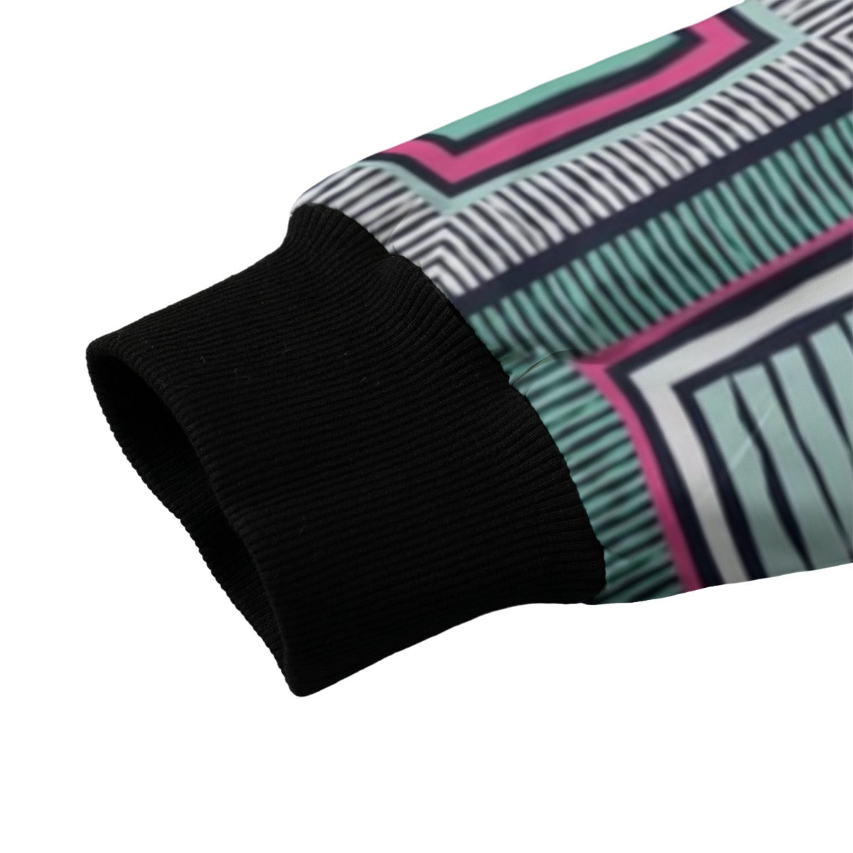 BoomBox Vibes Ethnic Boho Patchwork Fleece Bomber Jacket – Seamless Urban Streetwear