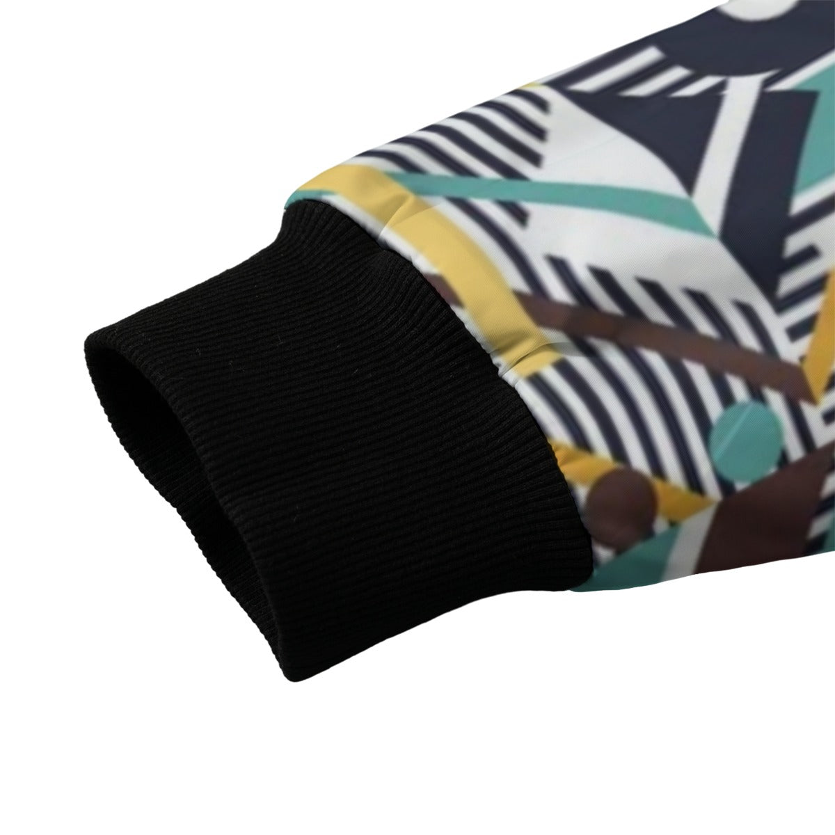 BoomBox Vibes Geometric Pattern Fleece Bomber Jacket – Bold Urban Streetwear