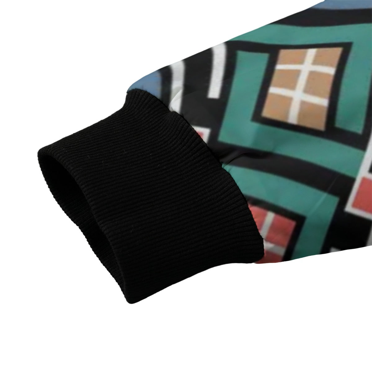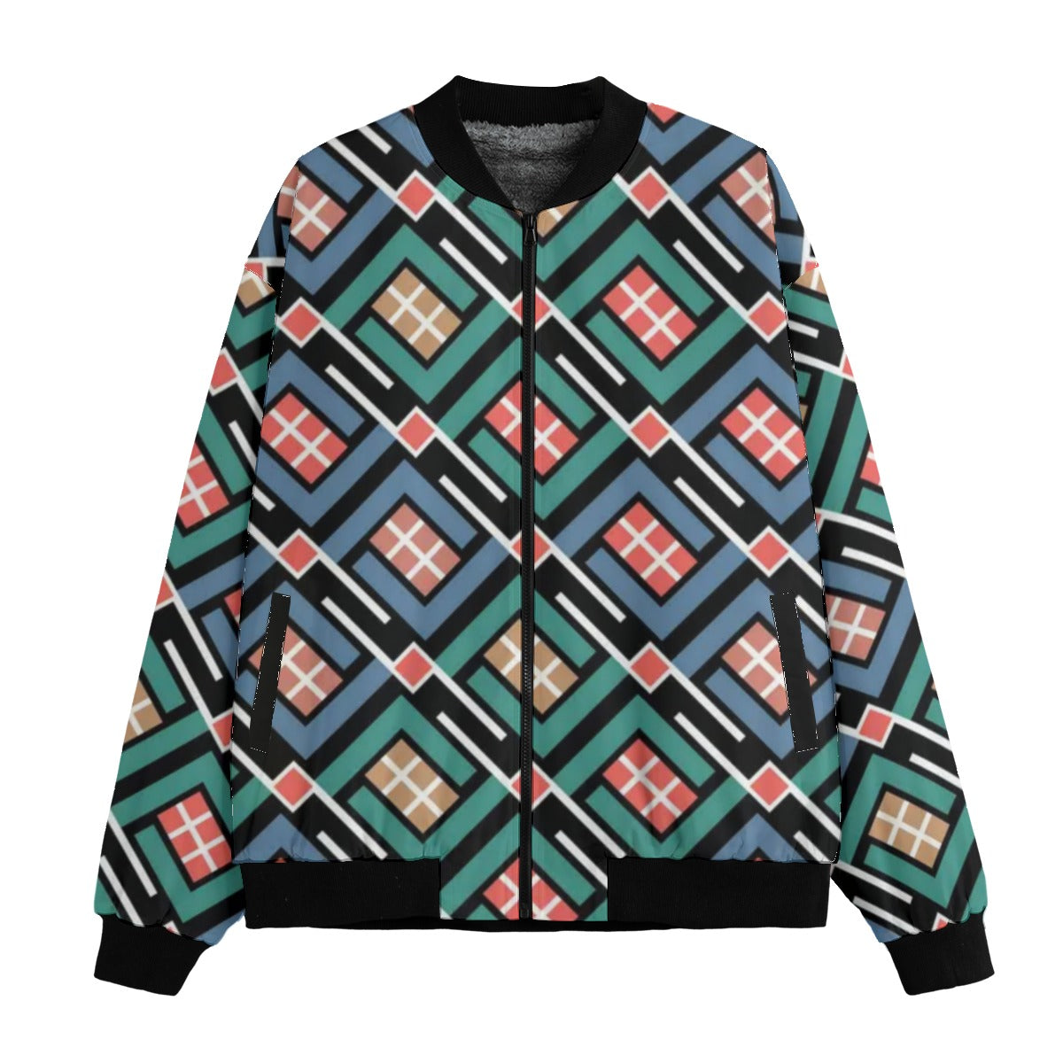 BoomBox Vibes Japanese Diamond Lines Fleece Bomber Jacket – Ethnic Streetwear Style