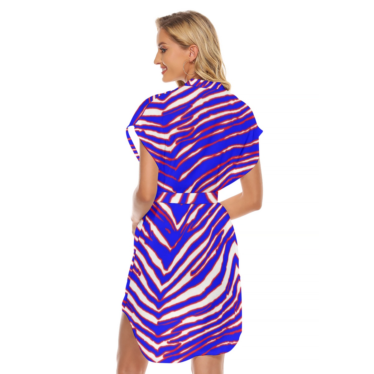 Buffalo Bills Zubaz Women's Stand-up Collar Casual Dress With Belt