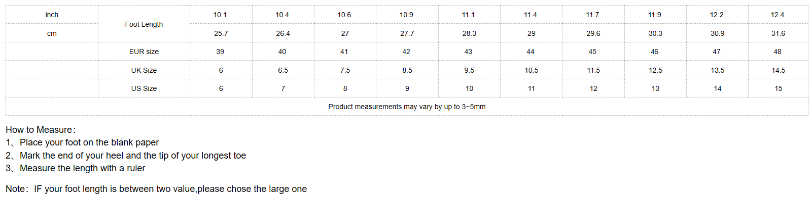 EUR Size | US Size | Insole Length(inch) | Insole Length(mm) |