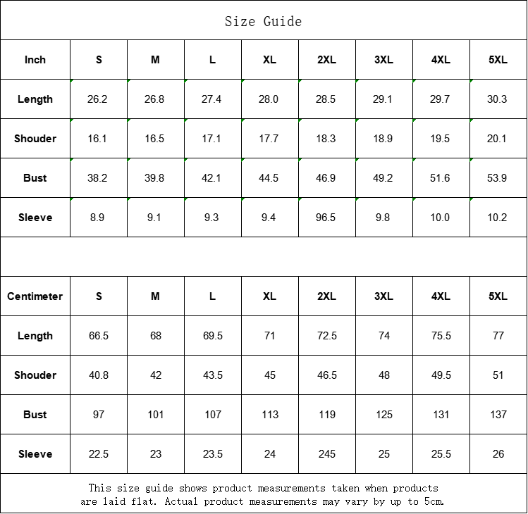 | Centimeter | S | M | L | XL | 2XL | 3XL | 4XL | 5XL |
