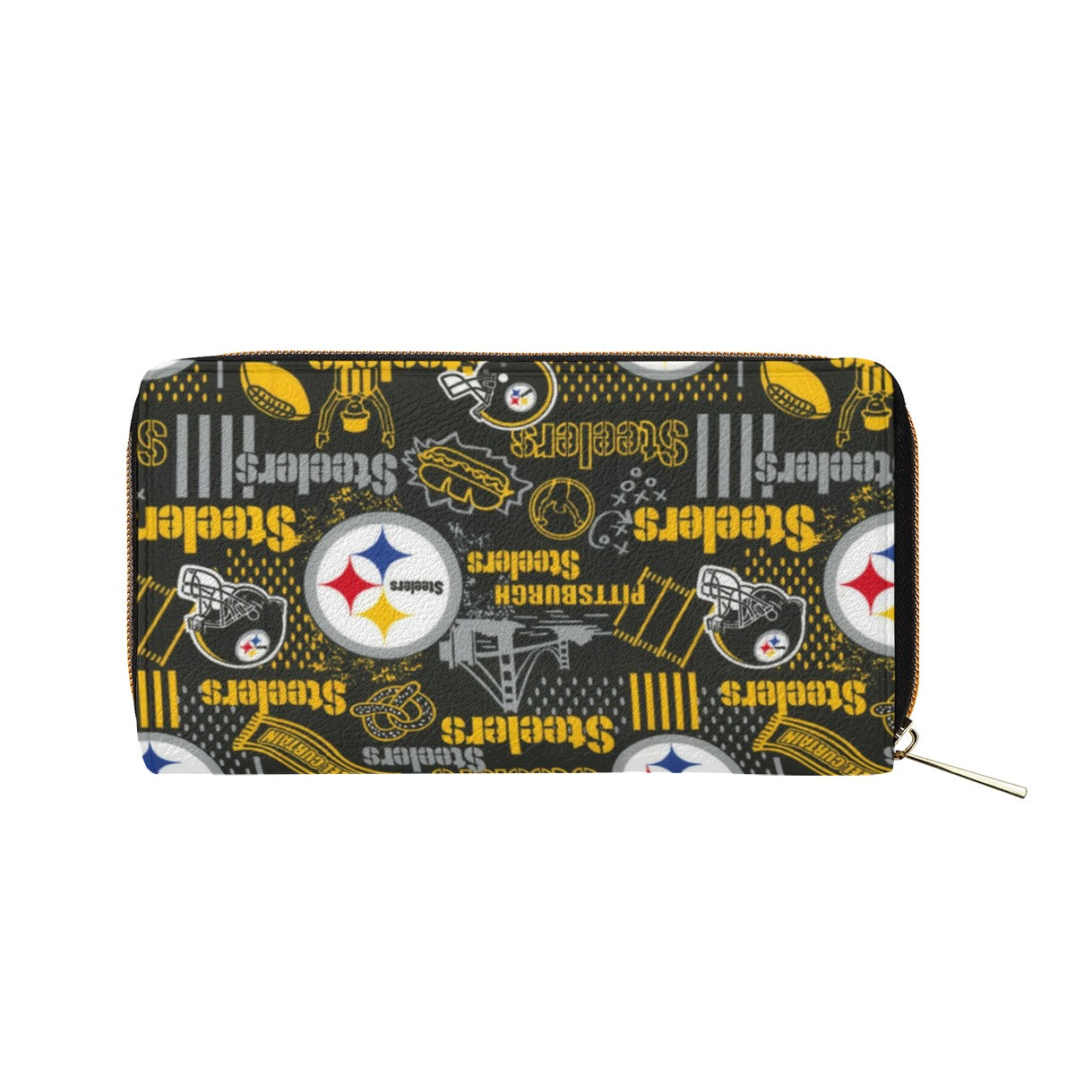 Stylish and portable wallet with metal zipper closure on one side and printable on both sides