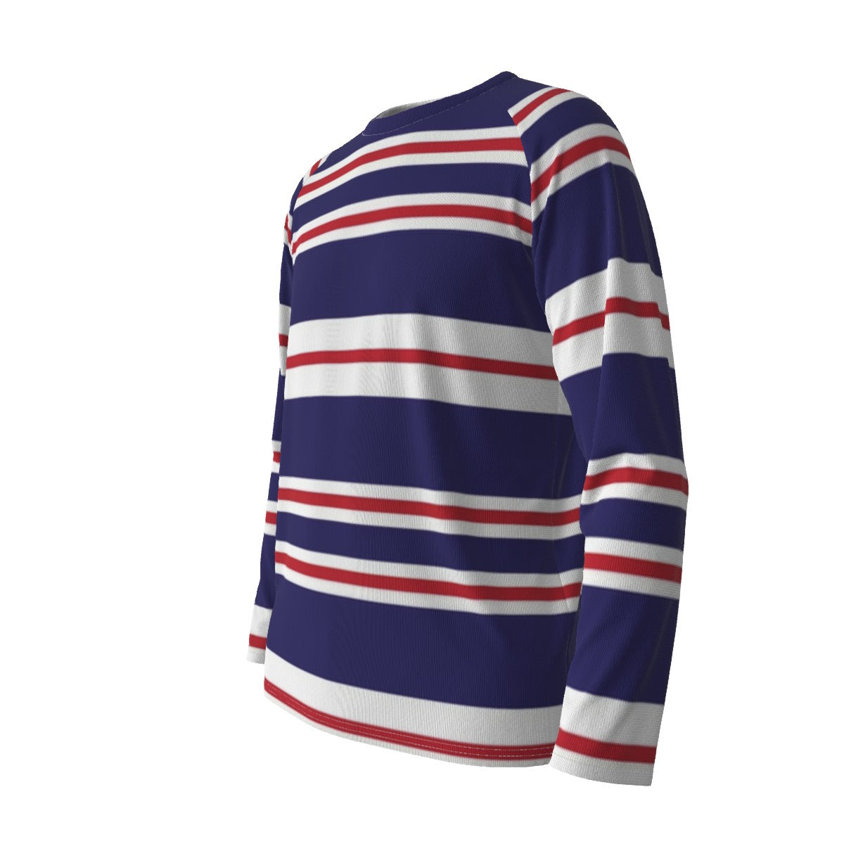 Navy Blue Red and White Striped Long Sleeve Shirt – Nautical Retro Style
