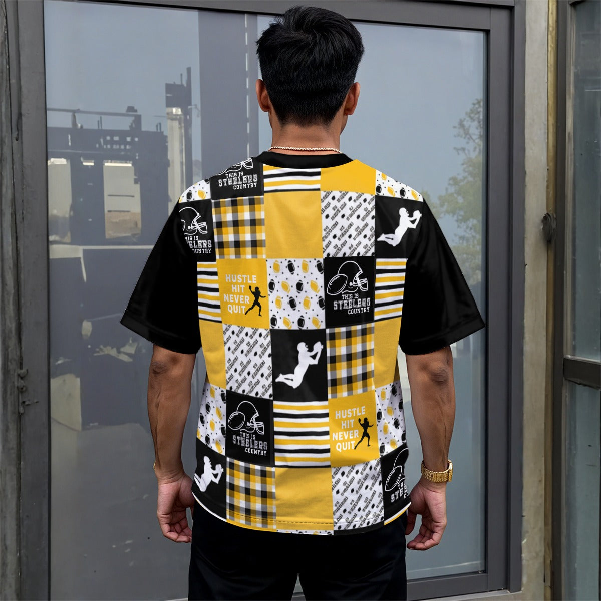 Show your pride for the Pittsburgh Steelers with this Pittsburgh Steelers All-Over Print Unisex Drop-shoulder T-shirt|180GSM. Designed for comfort, performance, and style, this item is perfect for true fans who want to stand out on NFL game day and beyond.
