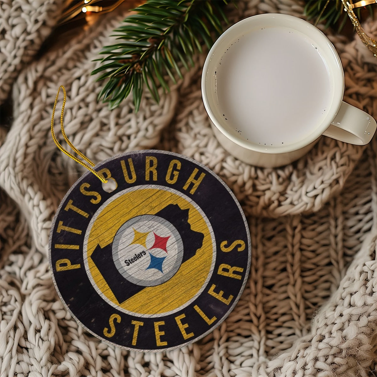 Show your pride for the Pittsburgh Steelers with this Pittsburgh Steelers Round Christmas Ceramic Decoration Ornaments. Designed for comfort, performance, and style, this cropped shirt is perfect for true fans who want to stand out on NFL game day and beyond.