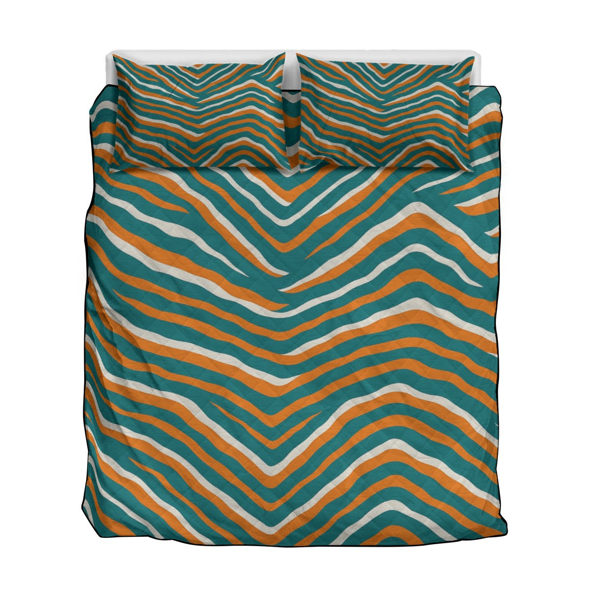 Miami Football Game Day Quilt & Pillow Cases With Edge-wrapping Strips