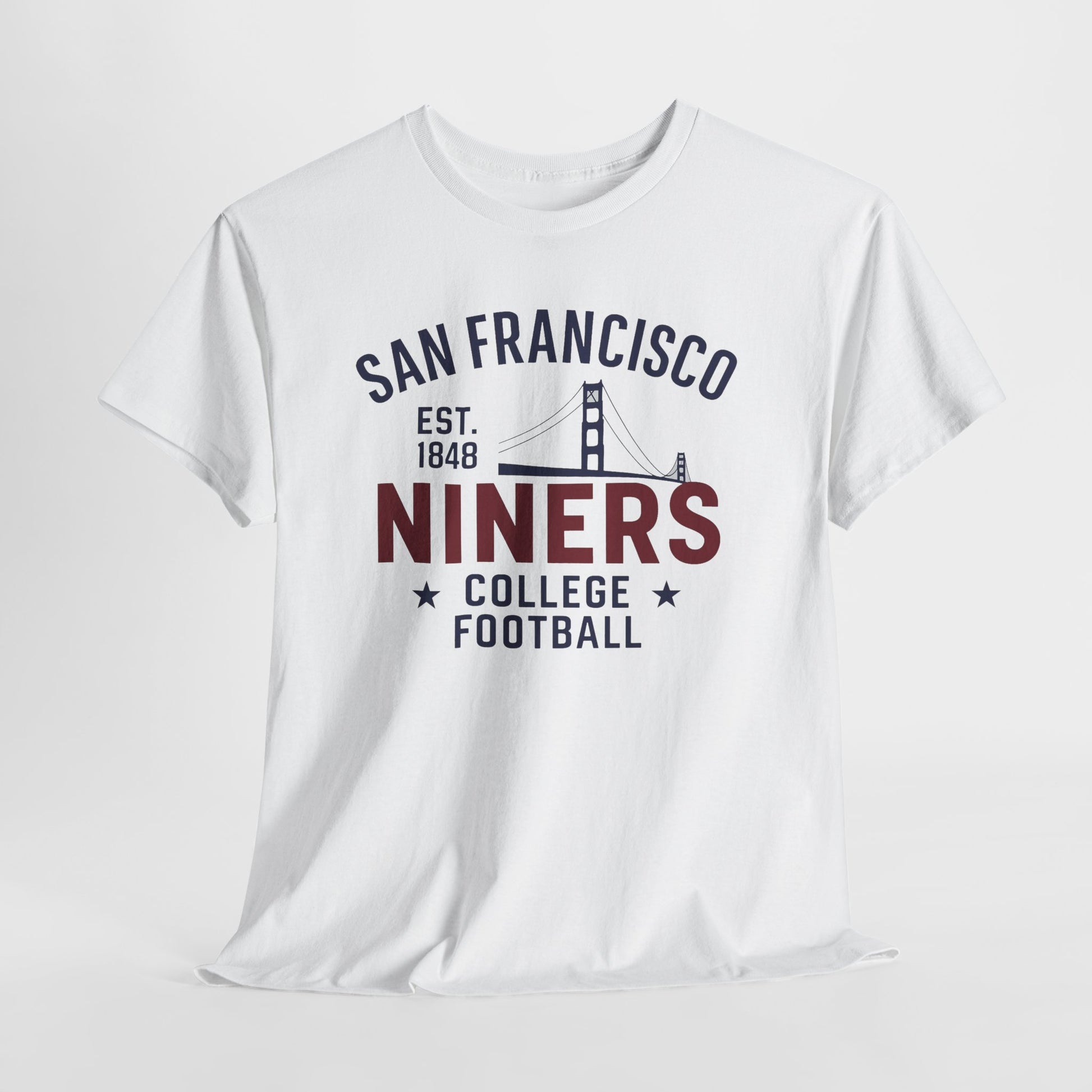 Introducing our Unisex Heavy Cotton Tee, a perfect blend of comfort, style, and durability. This tee is crafted for those who value both fashion and function. Its classic fit offers a relaxed wear, making it an ideal everyday choice for any casual or semi-formal occasion. Whether you're heading to a game, hanging out with friends, or simply lounging at home, this shirt fits seamlessly into your lifestyle. Perfect for sports enthusiasts and those who love to showcase their team spirit, this tee is an excellent gift for birthdays, holidays, or any celebration. Celebrate your love for college football and show off your pride for the Niners!