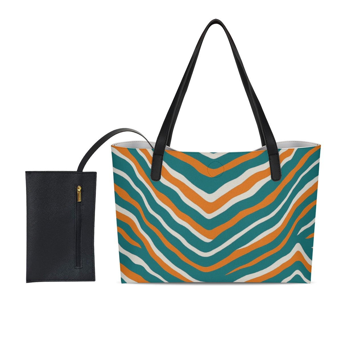Miami Football Game Day Shopping Tote Bag With Black Mini Purse
