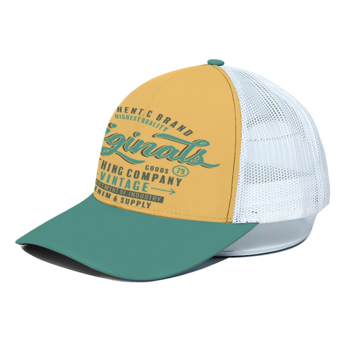 SEO Keywords: originals vintage cap, trucker hat yellow green, retro streetwear hat, vintage denim snapback, authentic brand cap, unisex mesh trucker hat, breathable casual cap