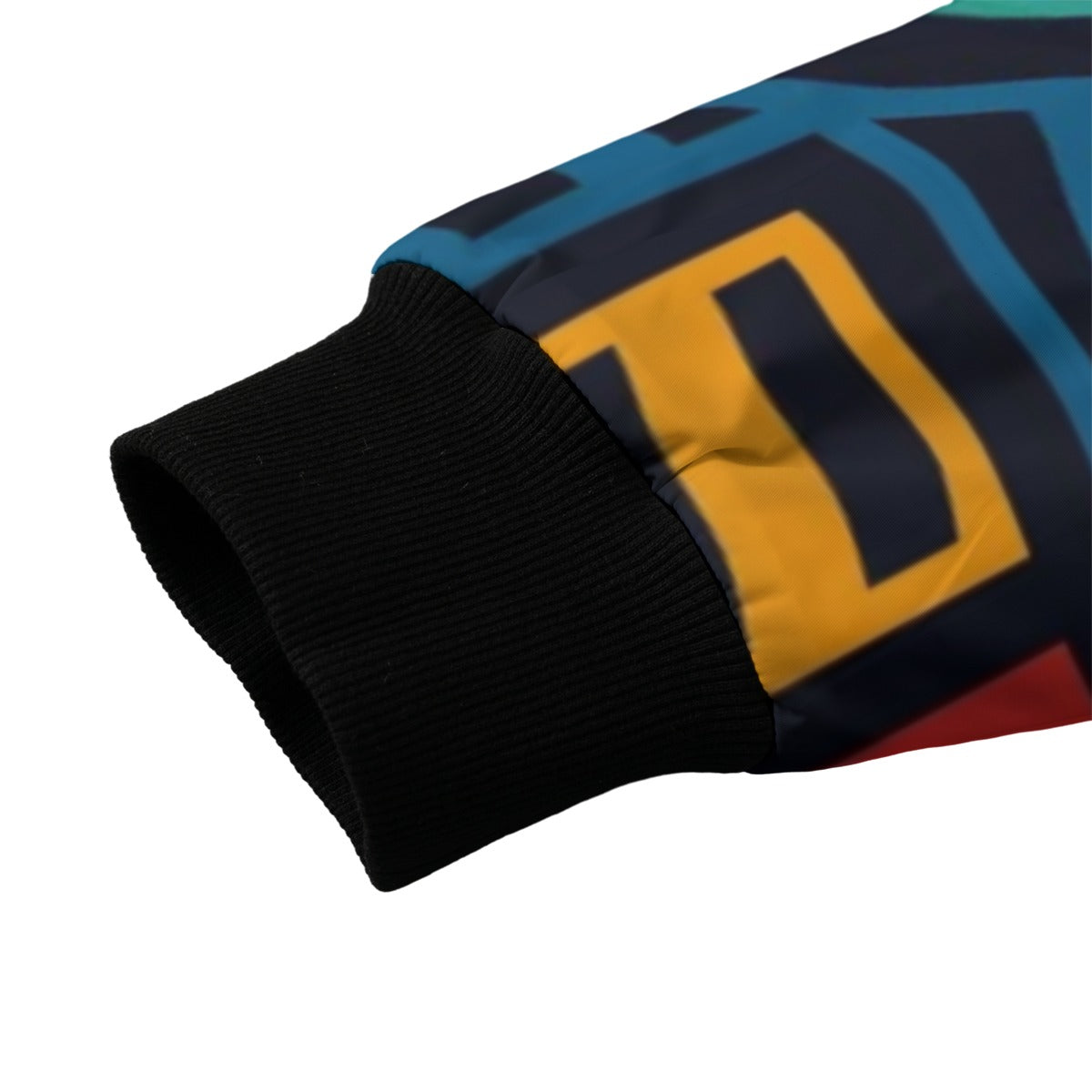 Urban Legend 90s Street Icons Bright Modern Seamless Geometric Pattern Fleece Bomber Jacket