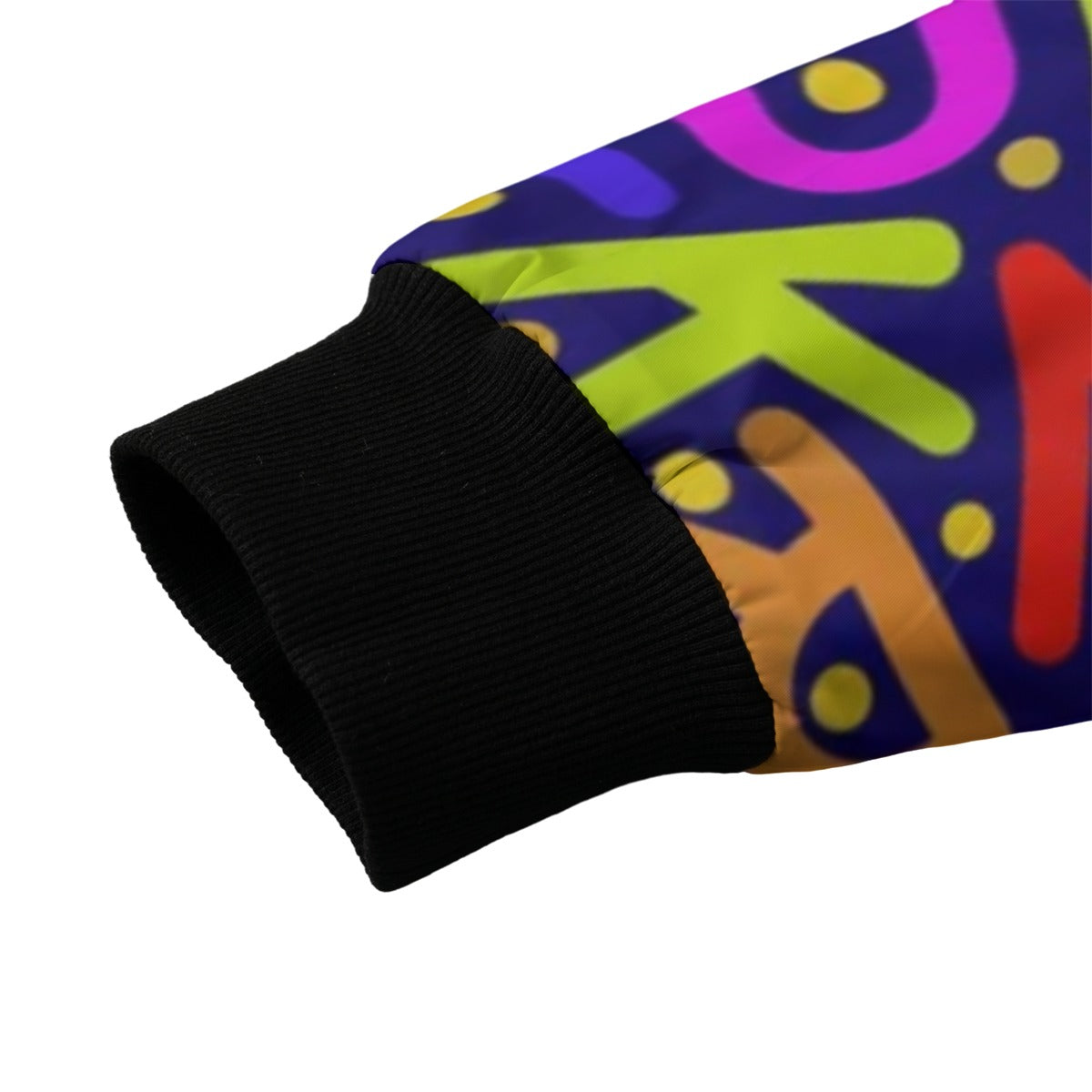 Urban Legend 90s Street Icons Bright Random Pattern Latin Letters Fleece Bomber Jacket