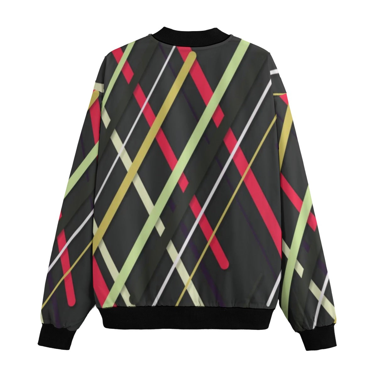 Ride the rhythm of pure retro energy with the Urban Legend 90s Street Icons Bomber Jacket — a vibrant celebration of movement, color, and street culture. Its random flowing stripe lines create a dynamic visual flow that captures the electric freedom of 90s fashion and the fearless creativity of street icons.