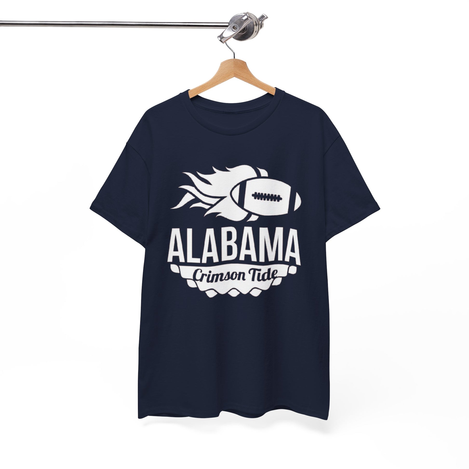Dynamic flaming football graphic with “Alabama Crimson Tide” text
