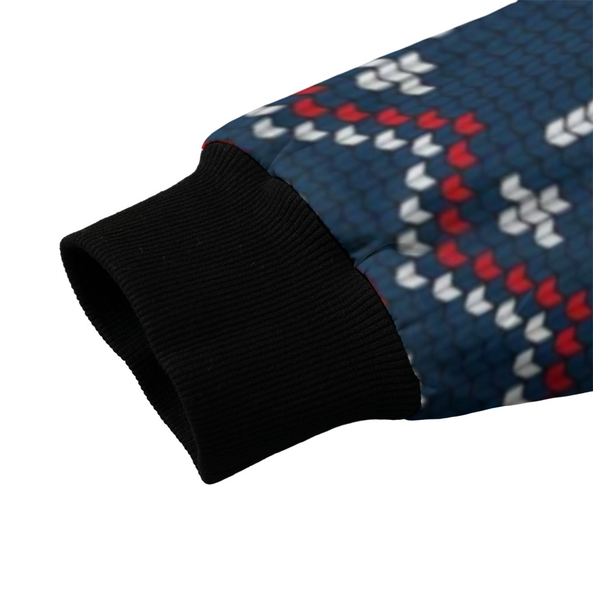 Urban Legend Knitted Christmas and New Year Snow Pattern Fleece Bomber Jacket