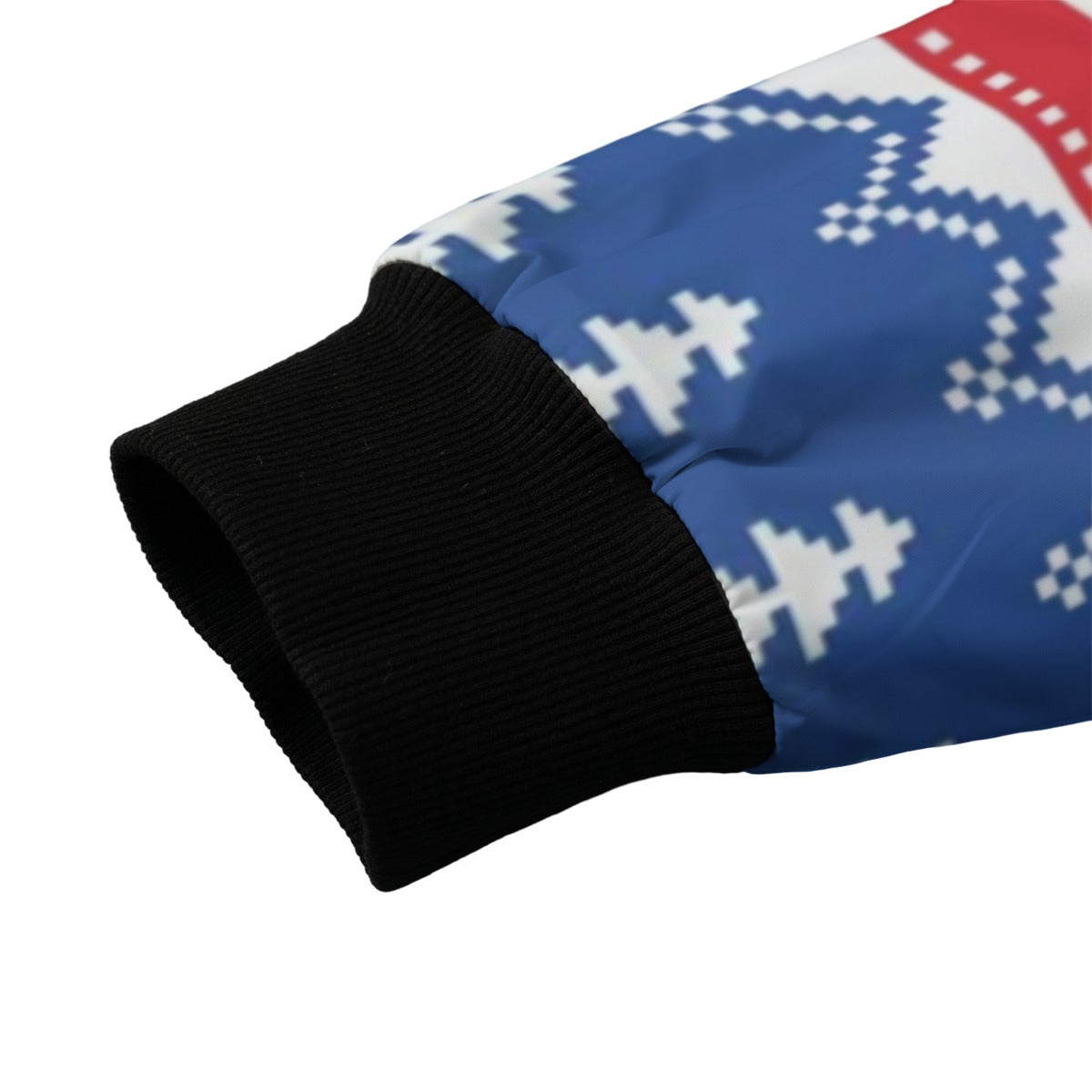 Urban Legend Snow Inspired Pattern Illustration Nordic Seamless Pattern with Deer Fleece Bomber Jacket brings together Scandinavian tradition and contemporary streetwear elegance. Featuring a detailed seamless Nordic design with snowflakes and deer motifs, this premium fleece bomber jacket delivers the perfect balance of warmth, festive charm, and timeless winter style — ideal for Christmas gatherings, outdoor walks, or cozy nights by the fire.