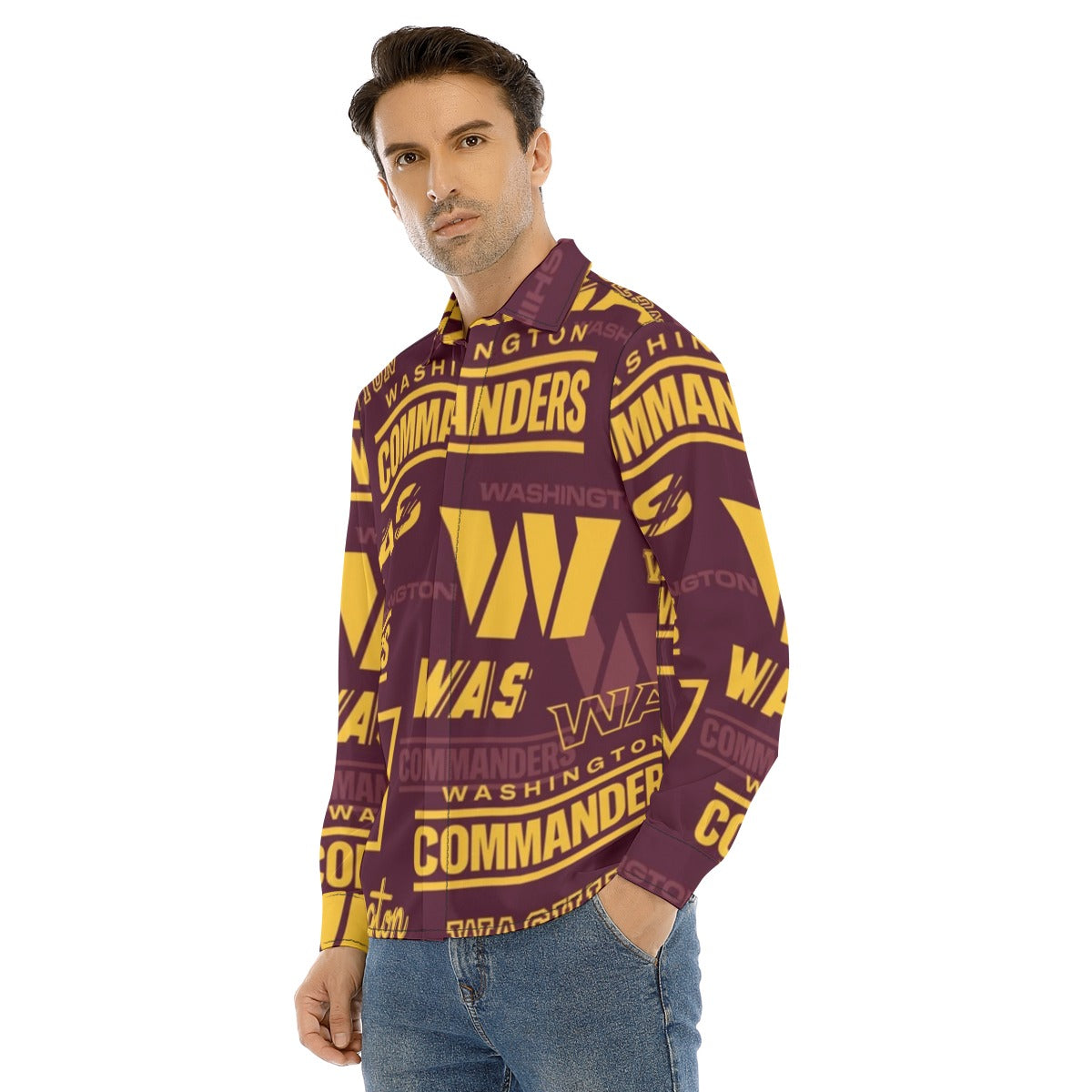 Washington Commanders Men's Lapel Collar Shirt With Concealed Placket