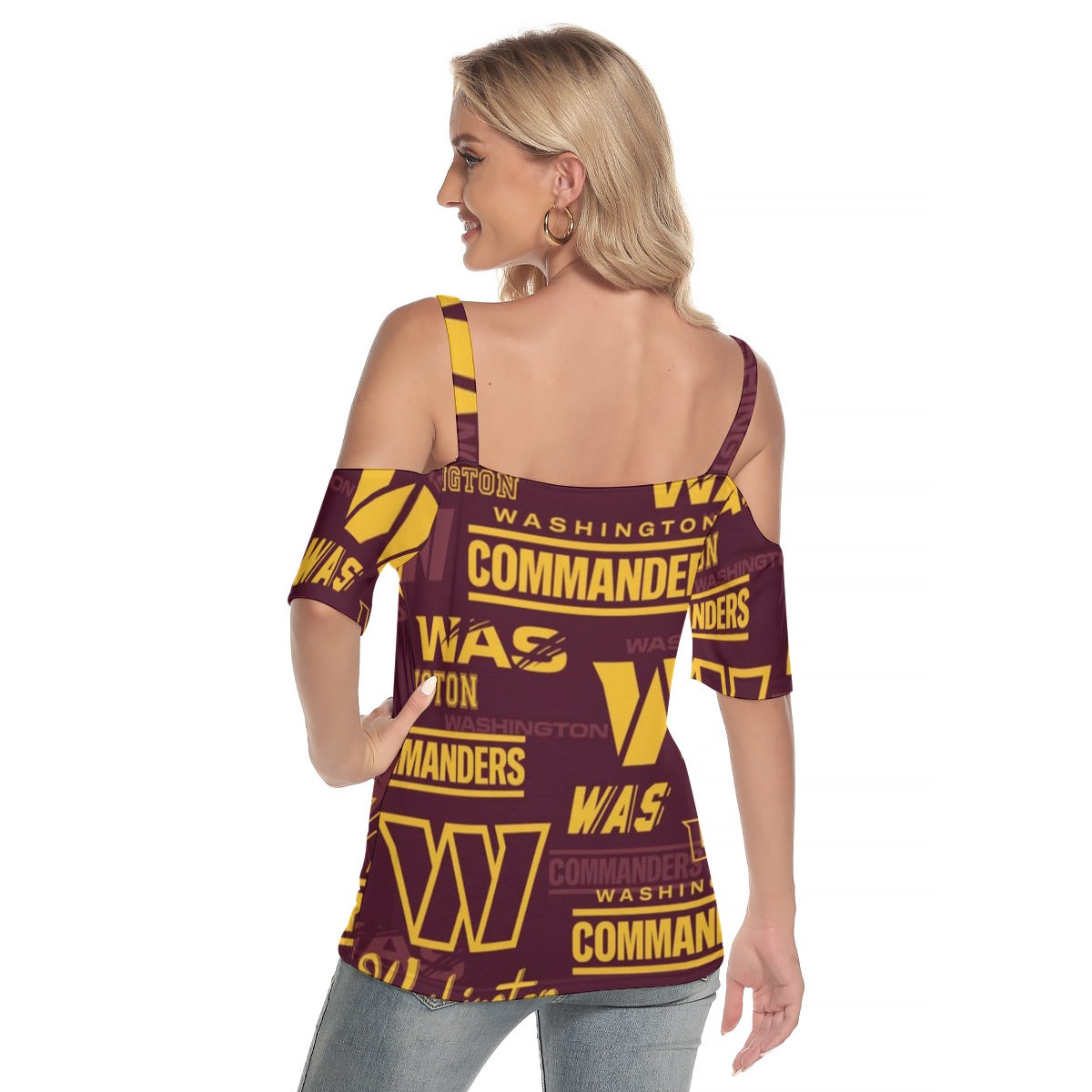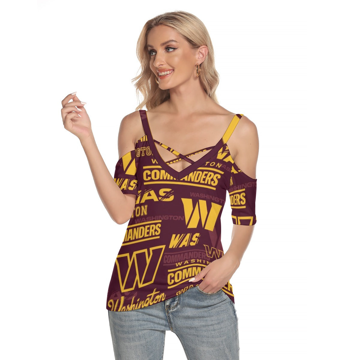 Washington Commanders Women's Cold Shoulder T-shirt With Criss Cross Strips