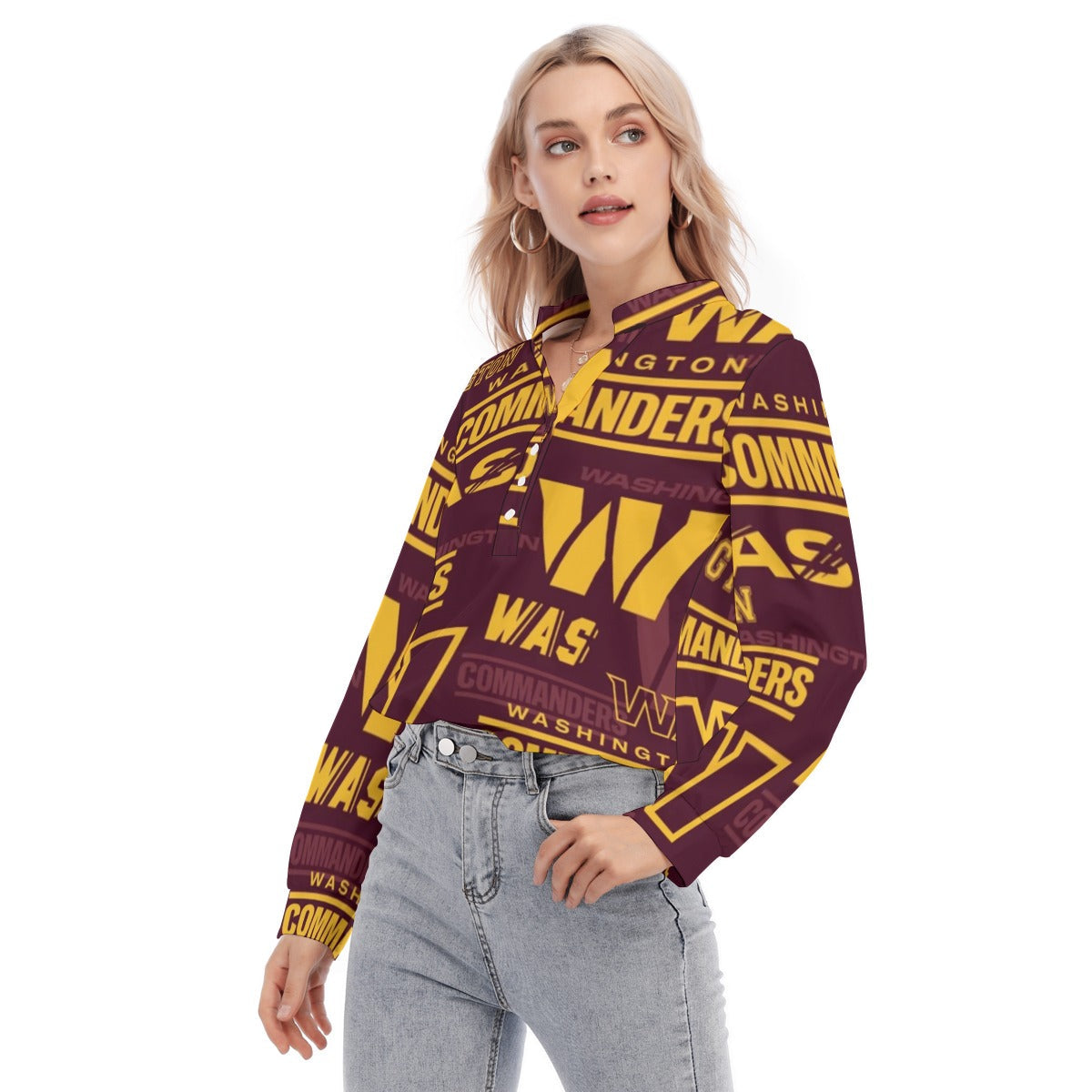 Washington Commanders Women's Long Sleeve Blouse With Button Closure