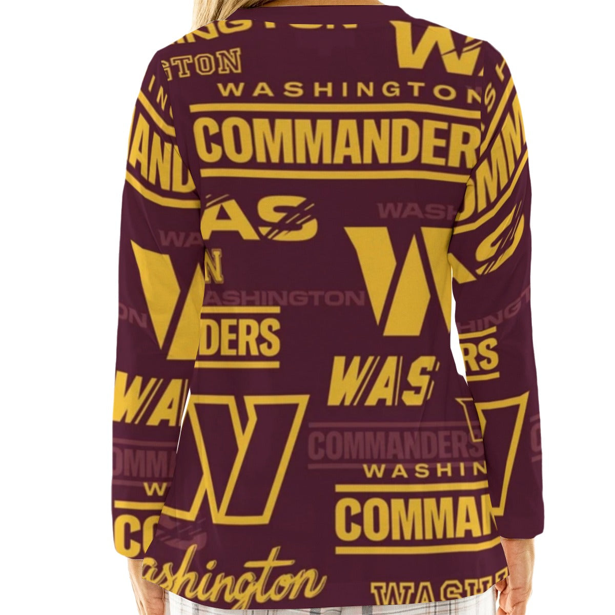 Washington Commanders Women's Loose V-Neck T-Shirt With Long Sleeve