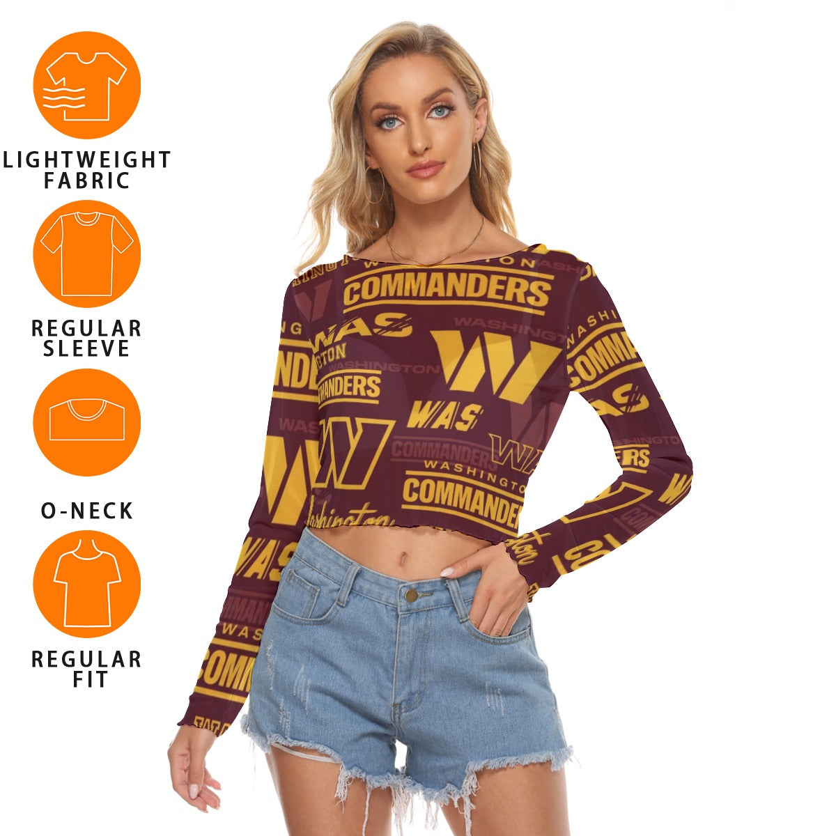 Show your passion for the Washington Commanders with this Washington Commanders Women's Mesh Long Sleeves T-shirt. Designed for comfort and performance, it keeps you stylish while representing your team spirit. Perfect for game day, workouts, or casual wear.