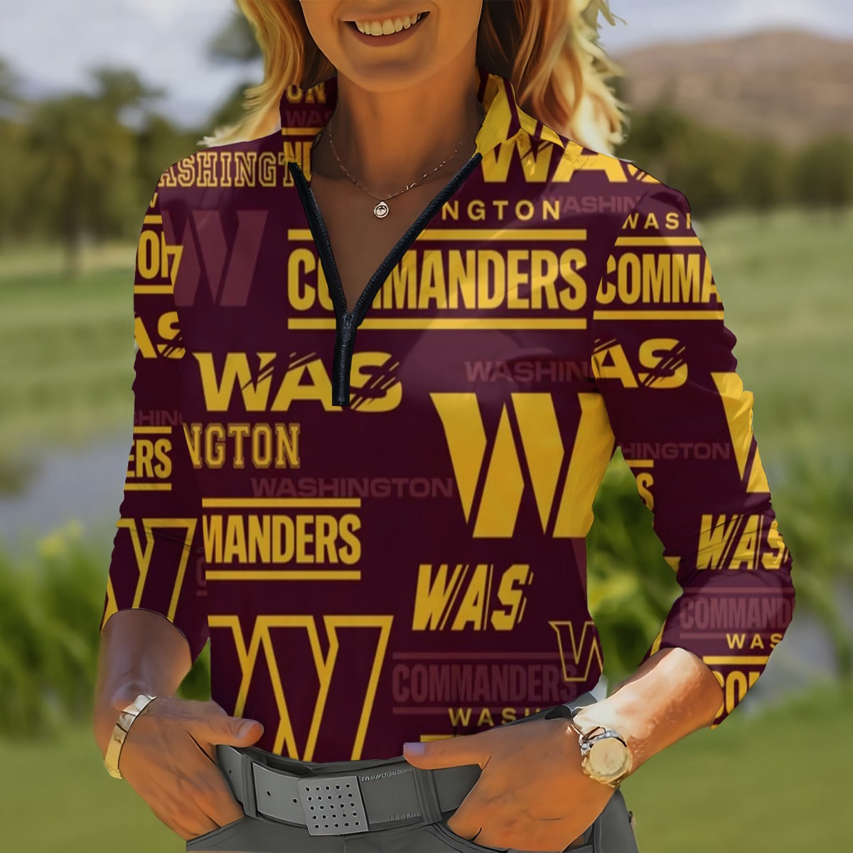 Show your passion for the Washington Commanders with this Washington Commanders Women's Quarter Zip Sport Shirt With Long Sleeve. Designed for comfort and performance, it keeps you stylish while representing your team spirit. Perfect for game day, workouts, or casual wear.