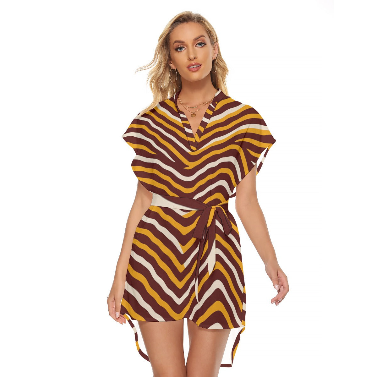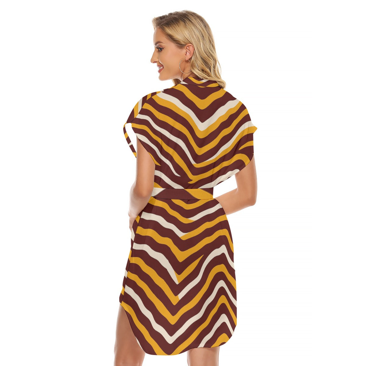 Washington Commanders Women's Stand-up Collar Casual Dress With Belt