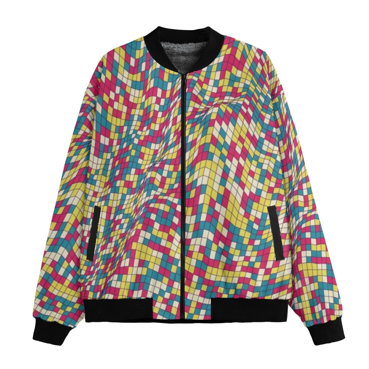 Wildstyle Graffiti Colorful Mosaic Polygonal Fleece Bomber Jacket