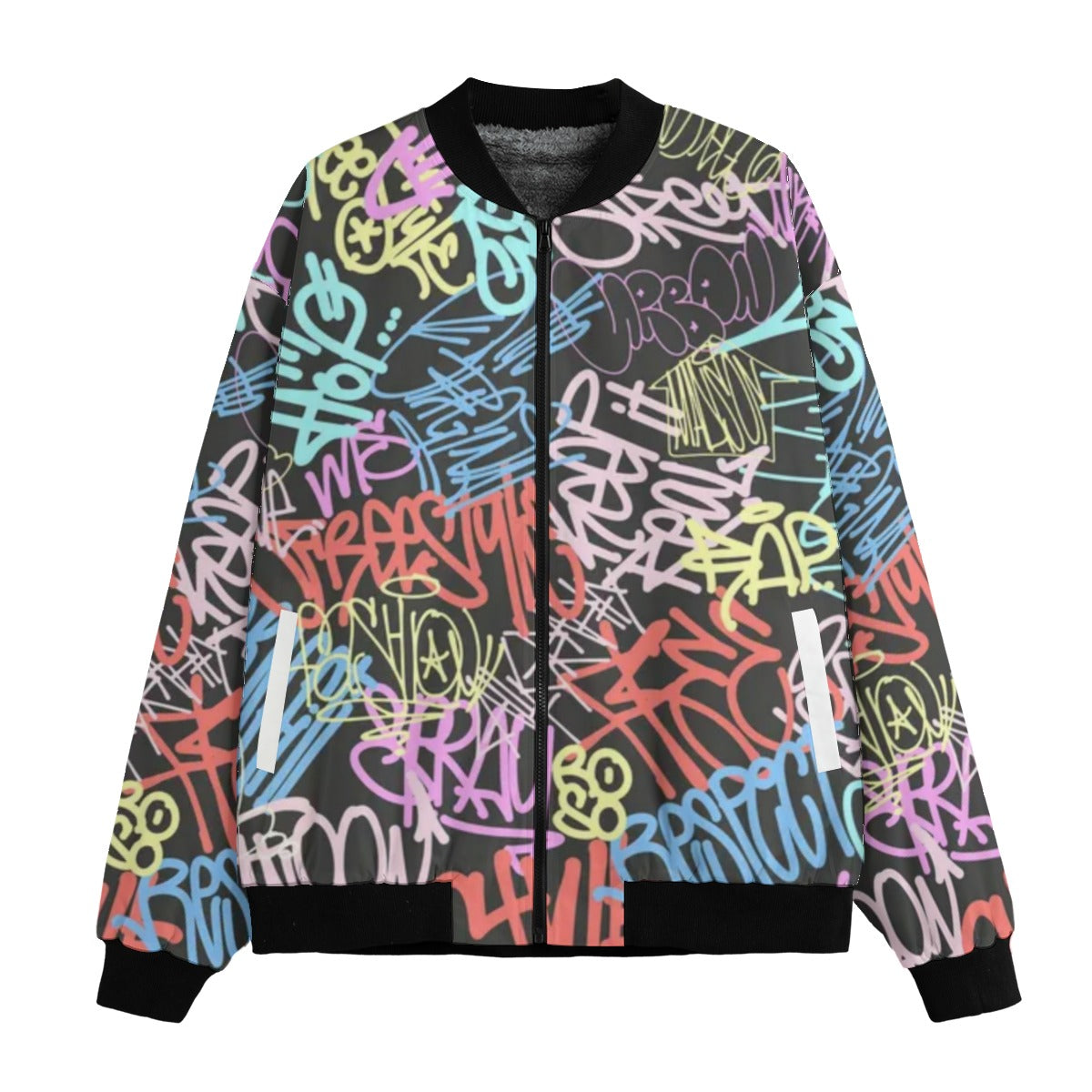 Wildstyle Graffiti Wall Tags Seamless Fleece Bomber Jacket